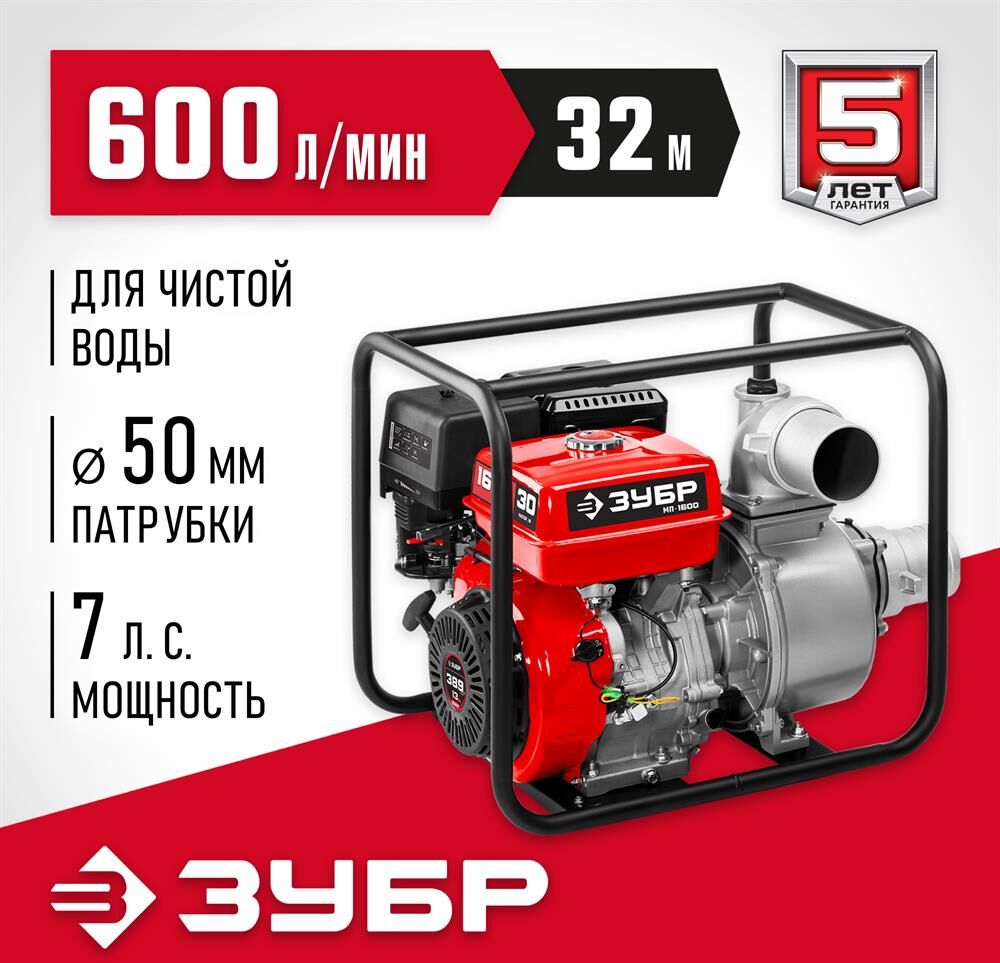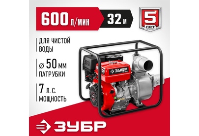 Поверхностный насос ЗУБР Мотопомпа бензиновая МП-600, для грязной воды, 600л/мин