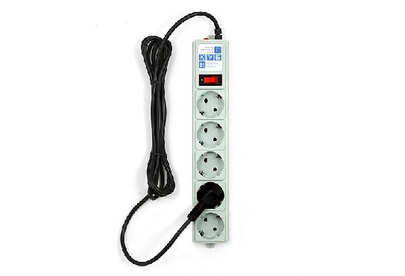 защита от импульсн помех, короткого замык и перегрузок, 220В, макс ток нагрузки 10А, макс поглощ энергия 90Дж, кабель ПВС-ВП 3х0.75мм2, Выключ – со светодиод индикац и коммутац двух проводников (фазы и нуля), 5 заземл евро-розеток, корпус – негорючий плас