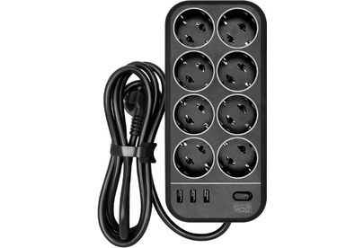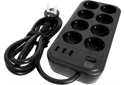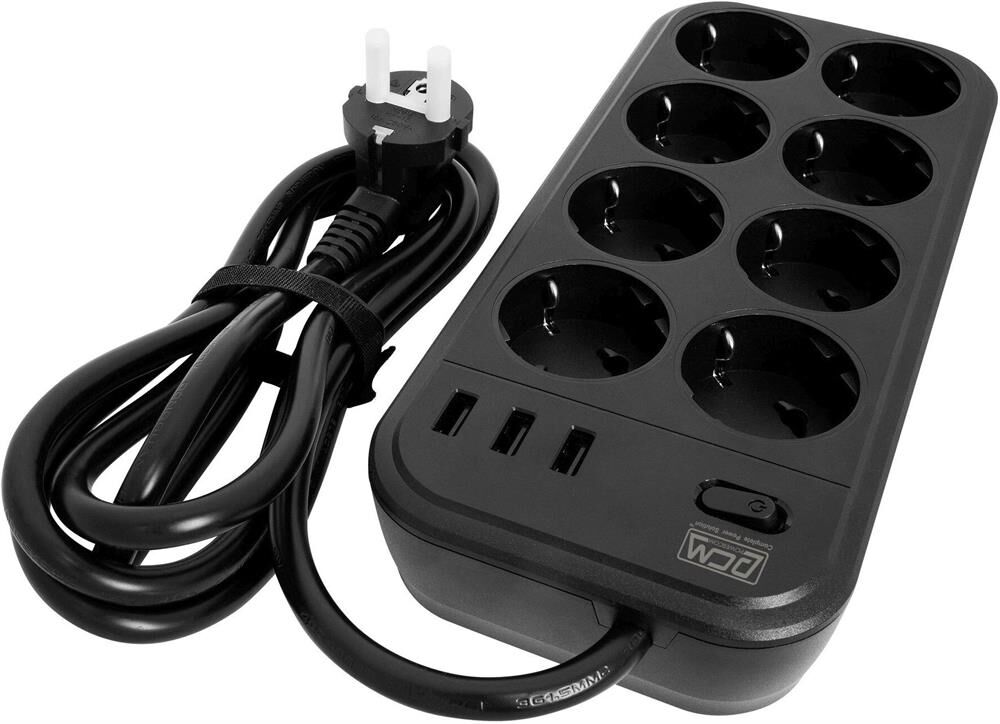 POWERCOM Сетевой фильтр SP-08 USB03AB 1.8М 1.8м (8 розеток) черный (коробка)