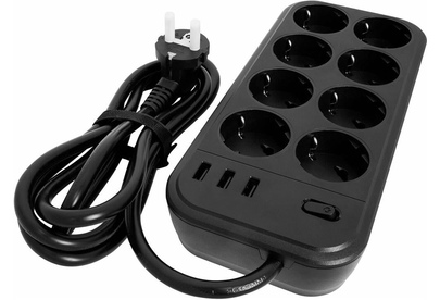 POWERCOM Сетевой фильтр SP-08 USB03AB 3,0М 3м (8 розеток) черный (коробка)