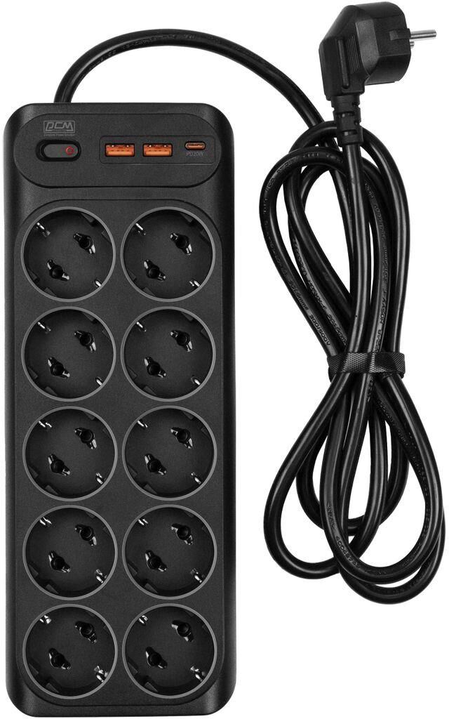 POWERCOM Сетевой фильтр SP-10 USB2A1СB 3,0м 3.0м (10 розеток) черный (коробка)