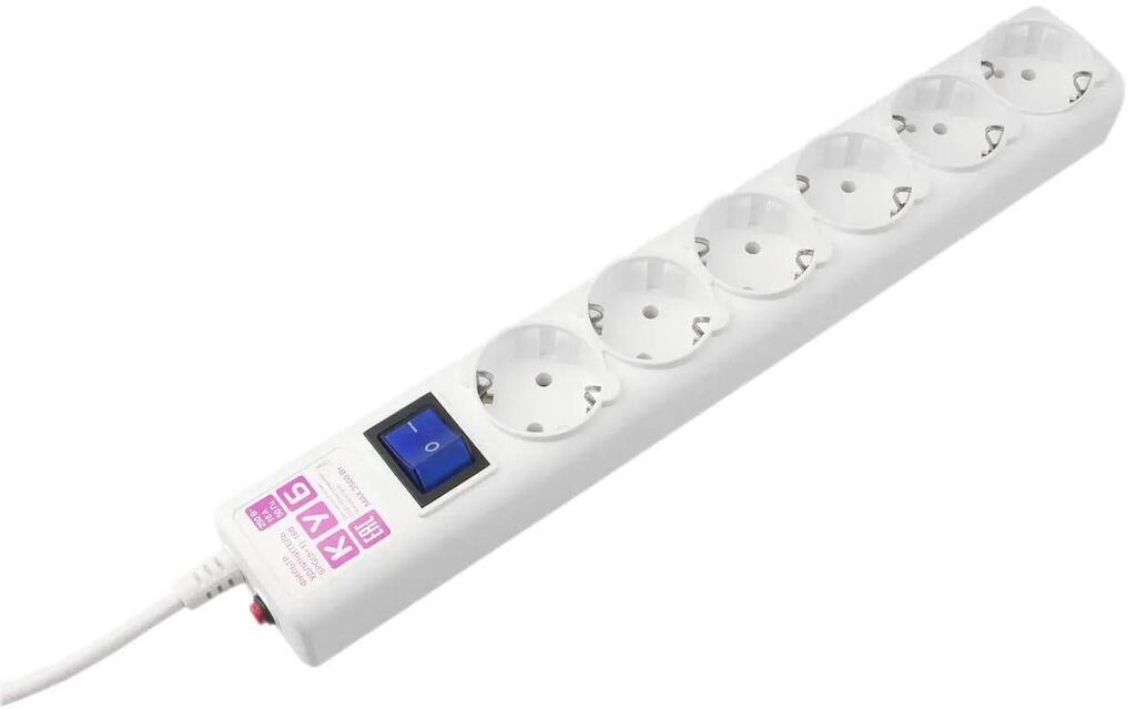 Длина шнура: 5. Максимальная нагрузка: 3500. Номинальный ток: 16. Номинальное напряжение питающей сети: 250. Частота сети: 50. Максимальный импульсный ток помехи: 4500. Подавление импульсных помех: да. Максимальная рассеиваемая энергия: 148. Защита от короткого замыкания: есть. Количество выходных розеток: 6. Страна производства: Россия. Наличие заземления выходных розеток: с заземлением. Гарантия: 48 мес.. Цвет: белый. Максимальная нагрузка: 3500 Вт. Длина шнура: 5 м. Количество выходных розеток: 6