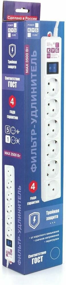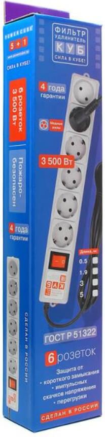 POWERCUBE SPG(5+1)-16B-1,9М-WHITE 1.9м (6 розеток) белый (коробка)