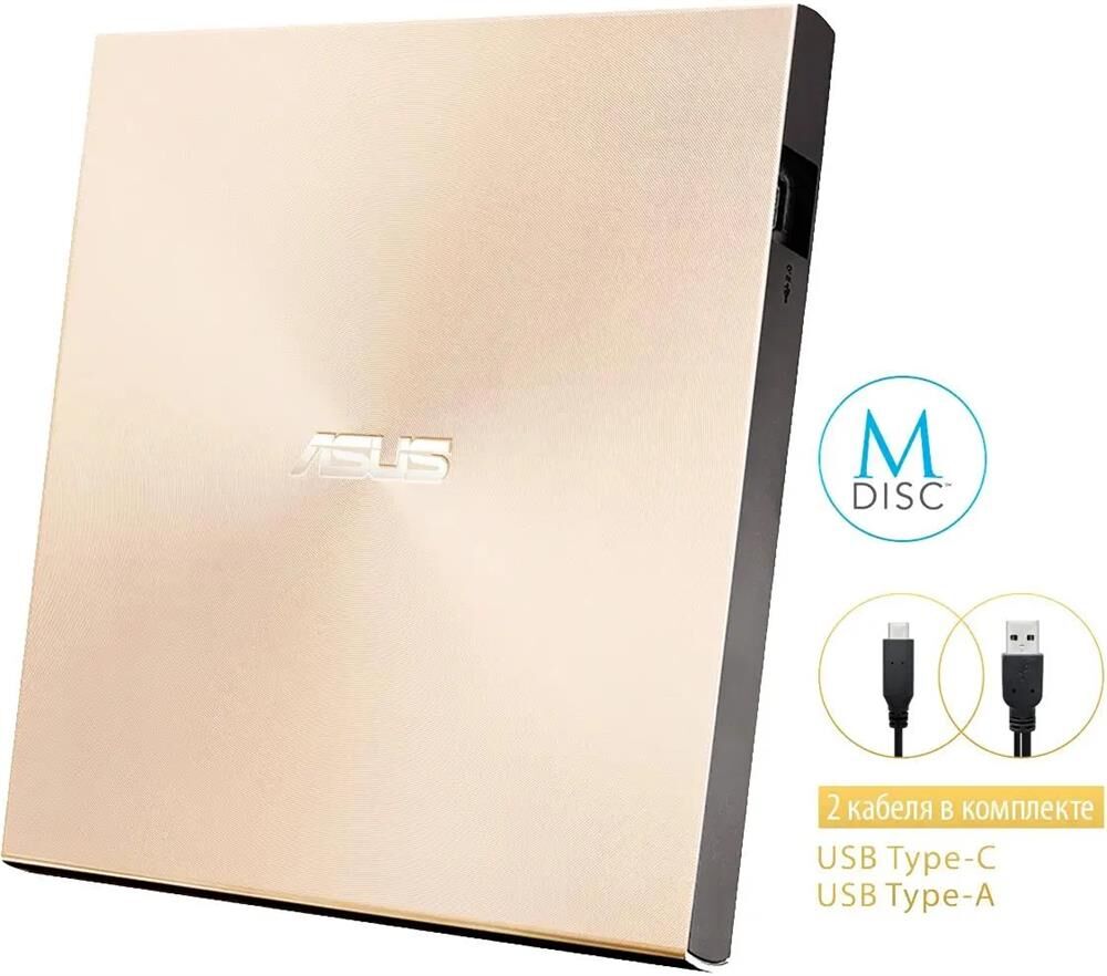 Привод оптический ASUS Оптический привод DVD-RW SDRW-08U9M-U, внешний, USB, золотистый, Ret [sdrw-08u9m-u/gold/g/as]