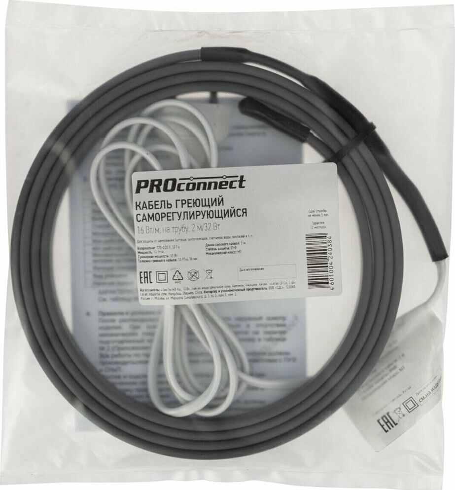 Комплект саморегулирующегося кабеля PROconnect 16 Вт/м предназначен для защиты от замерзания бытовых трубопроводов, счетчиков воды, вентилей и т. п.