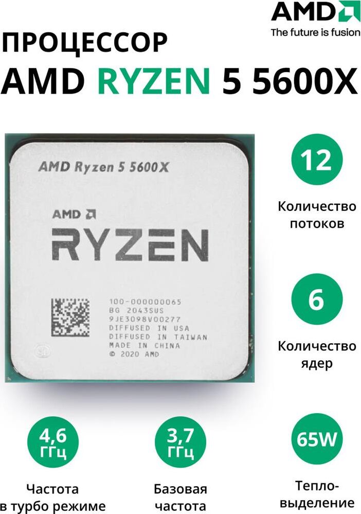 Процессор AMD Ryzen 5 5600X, SocketAM4, OEM (100-000000065)