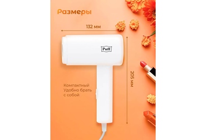 PUFF Фен для волос " -1602", белый, 1,6 кВт