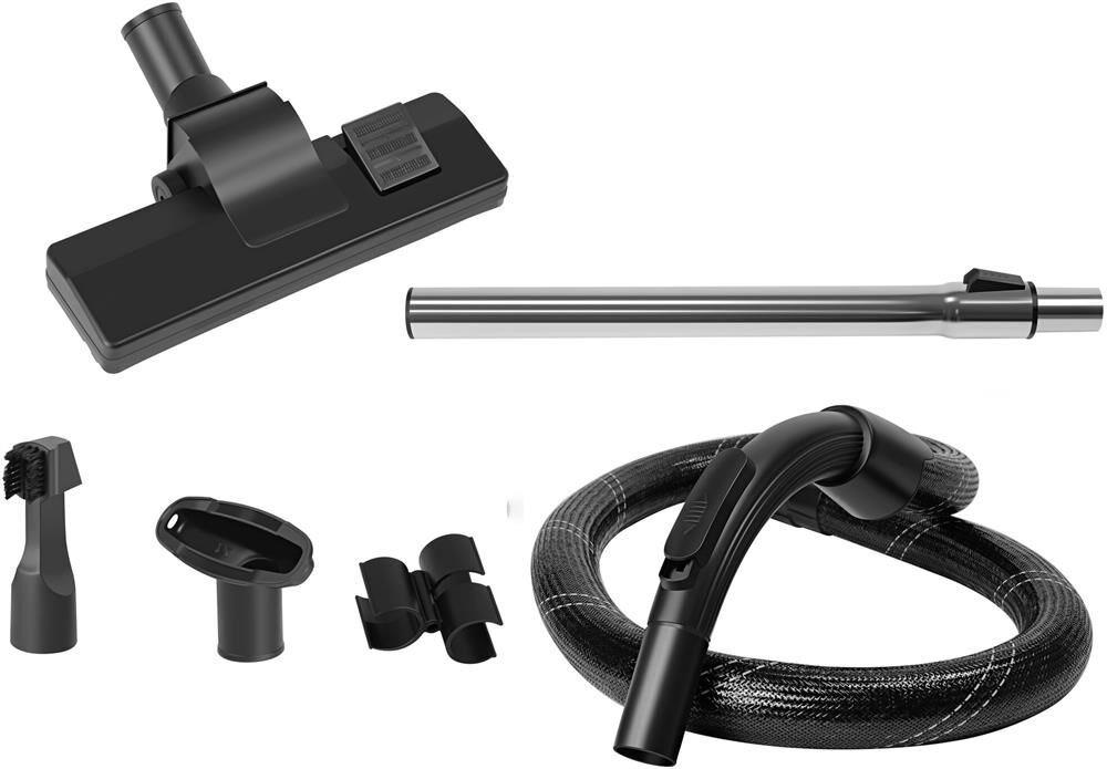 Характеристики Номинальная потребляемая мощность: 1800 Вт Максимальная мощность: 2000 Вт Мощность всасывания: 400 Вт 220-240 В, 50 Гц Возможность уборки: сухая Тип пылесборника: контейнер Объем пылесборника: 3 л Тип питания: сеть Уровень шума 79 дБ Габариты: 420х280х285 мм Длина сетевого шнура 5 м Фильтрация: моторный фильтр, фильтр тонкой очистки HEPA Труба всасывания: телескопическая Материал трубы всасывания: хромированный металл (80 см) насадка щелевая 2 в 1, насадка мебельная Длина шланга 1,5 м Автоматическое сматывание шнура Регулировка мощности Вертикальная парковка КОМПЛЕКТАЦИЯ: телескопическая трубка гибкий шланг щетка для пола и ковров щетка для мебели щелевая насадка