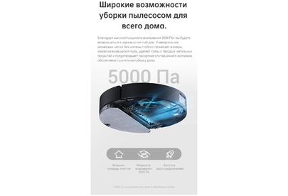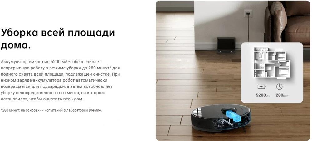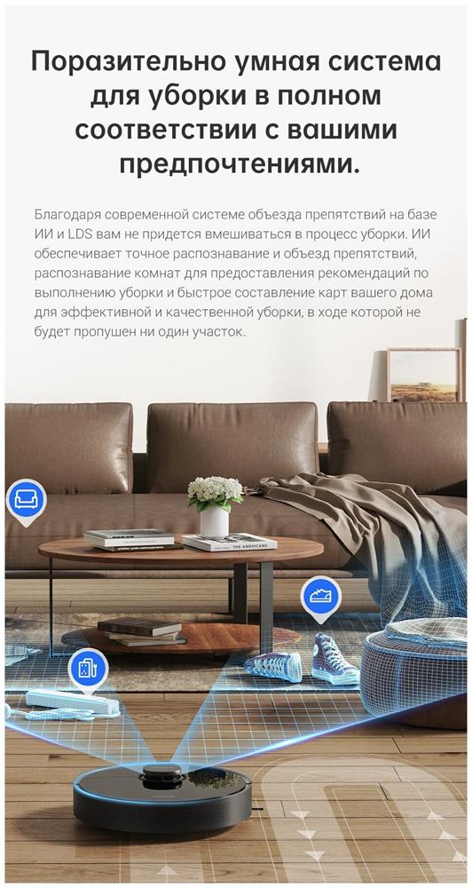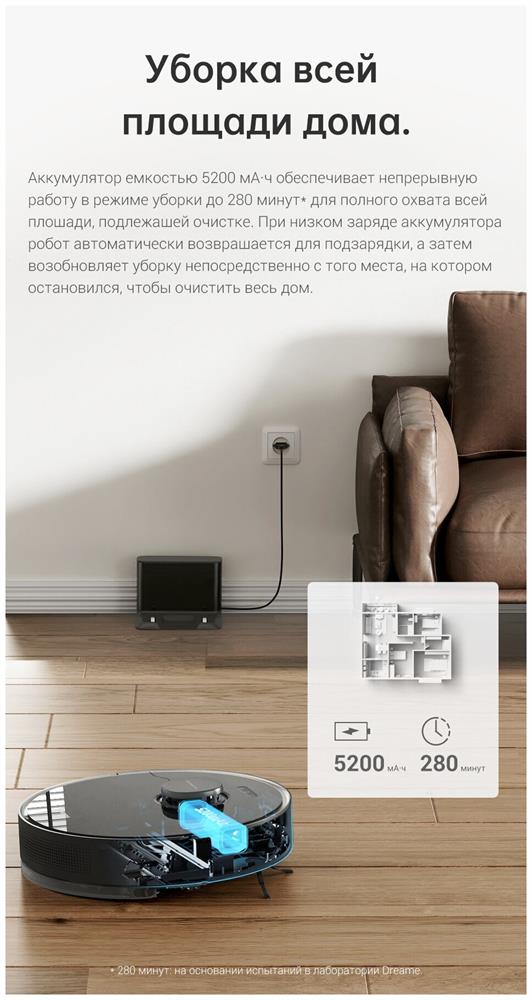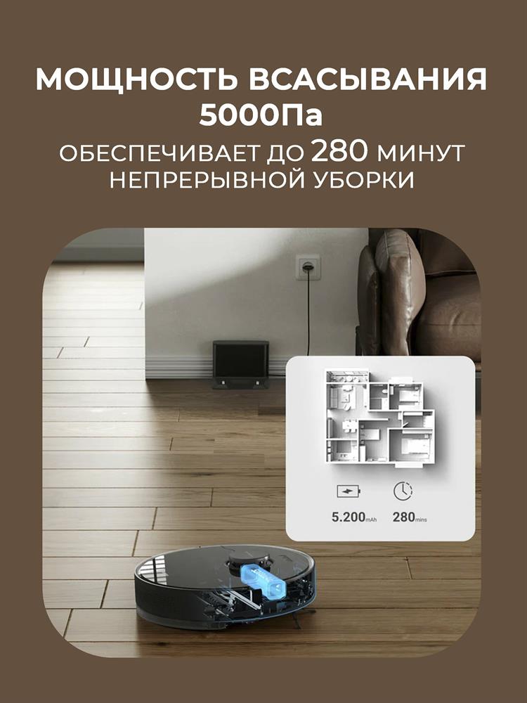 Номинальная мощность 46Вт Навигация LDS Батарея 5200mAh Объем мусорного бака 570 мл Объем резервуара для воды 235 мл Уровень всасывания 5.000Па Рабочий шум (дб) 60 Фильтрующая система Нейлоновый фильтр + Hepa Преодоление препятствия 20 мм Рабочее время 160мин