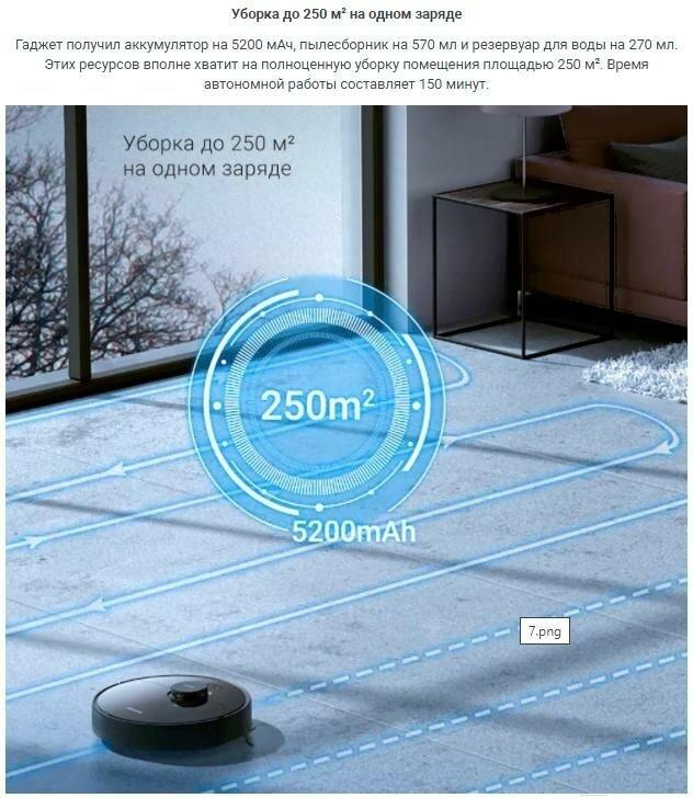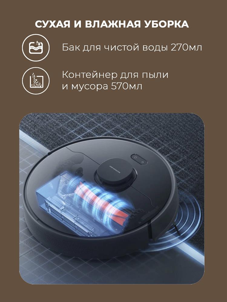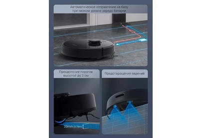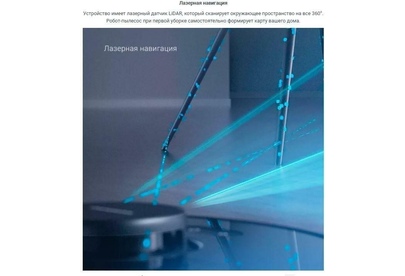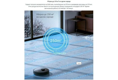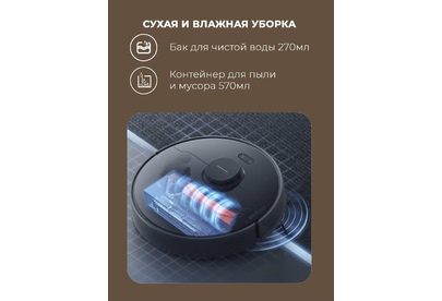 Номинальное напряжение устройства 14,4 В Номинальная мощность 42Вт Емкость аккумулятора 5200 мА·ч Мощность всасывания 800/1200/1800/4000Па Объем контейнера для пыли 570 мл Объем контейнера для воды 270 мл Преодоление препятствий 20 мм Уровень шума, дБА 64/66/69/74 Время работы, мин 150 (стандарт) Время зарядки Около 6 ч Беспроводное подключение Wi-Fi IEEE 802.11b/g/n 2,4 ГГц Навигация Лазер LDS+интеллектуальный алгоритм SLAM