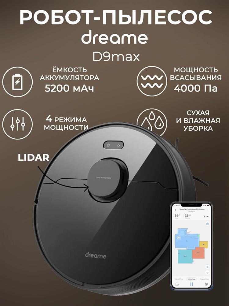 Пылесос без мешка DREAME DreameBot Robot Vacuum and Mop D9 Max Black (RLS5-BL1)