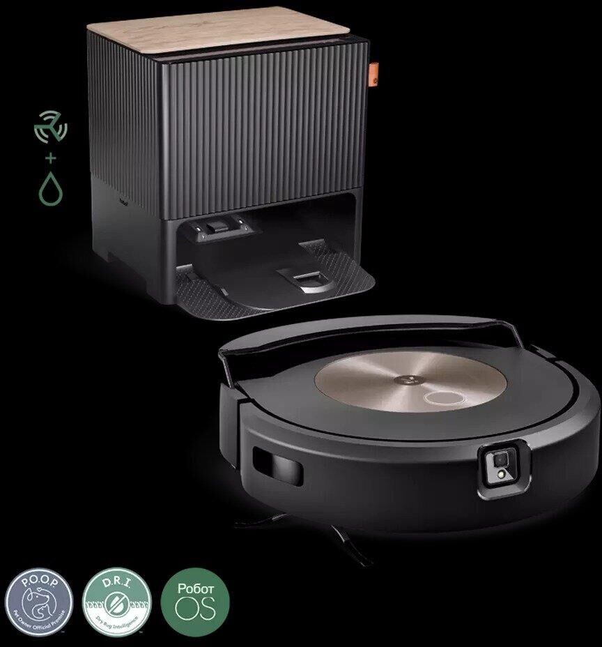 Пылесос без мешка IROBOT Робот-пылесос Roomba Combo J9+, 70Вт, черный/черный [j955840rnd]