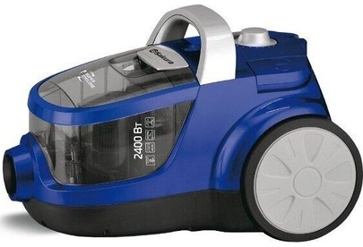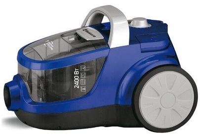 2400Вт, макс.мощность всасывания 450 Вт, регулировка мощности, HEPA-фильтр, уровень шума ?79 дБ, контейнер д/сбора пыли 2.0 л (циклонная система), индикатор заполнения пылесборника, металлич. телескопич. труба, автоматическое сматывание шнура. Многофункциональные насадки: насадка ковер/пол, насадка для мебели, щелевая насадка. Цвет корпуса: синий металлик.