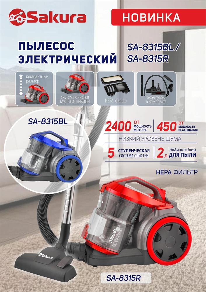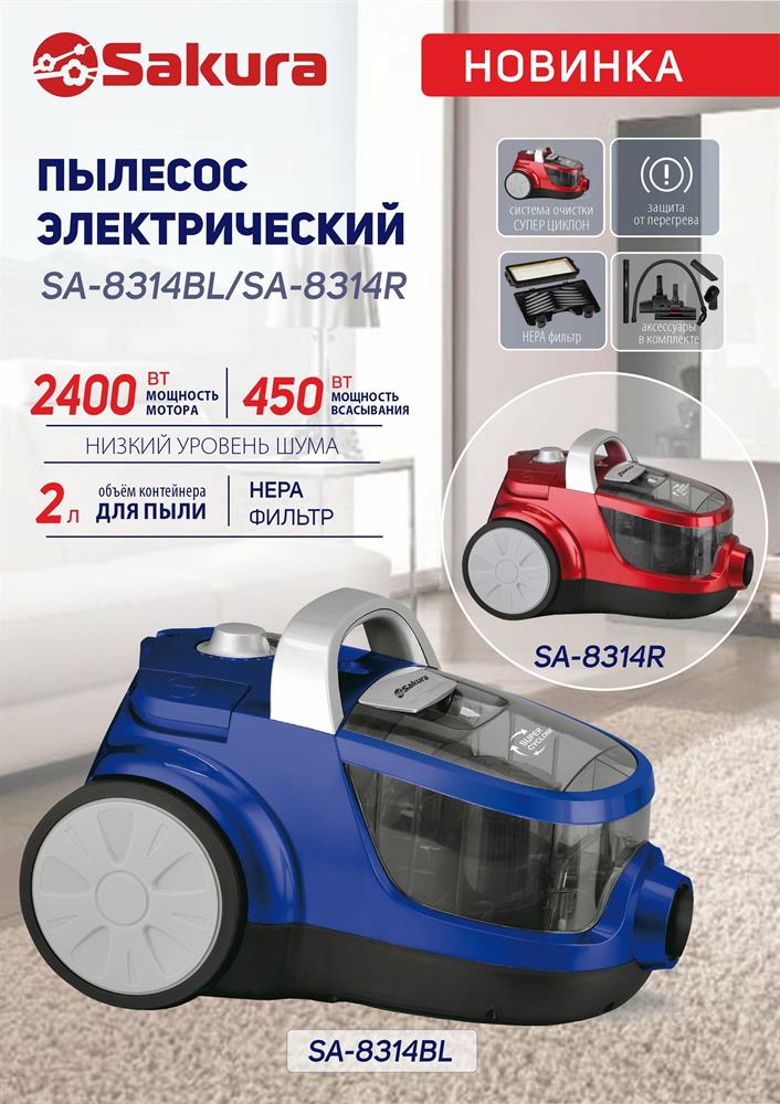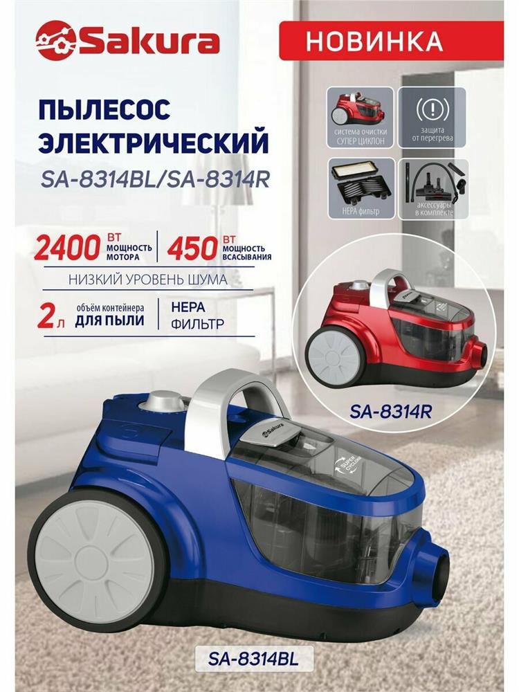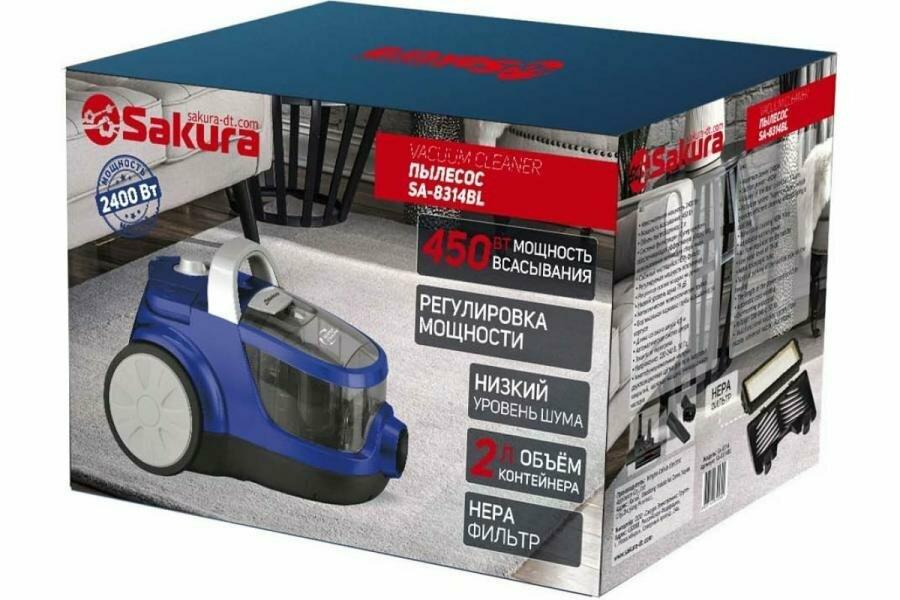 Пылесос без мешка Пылесос SA-8314BL 2400Вт б/м HEPA син метал