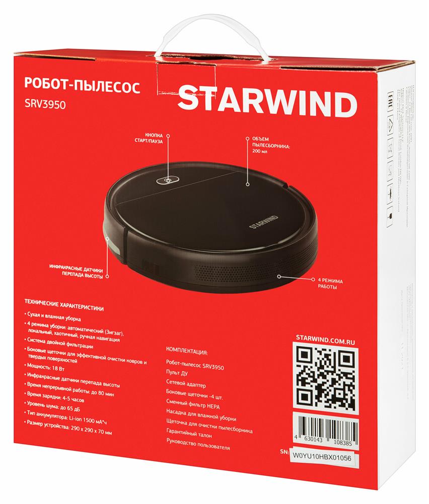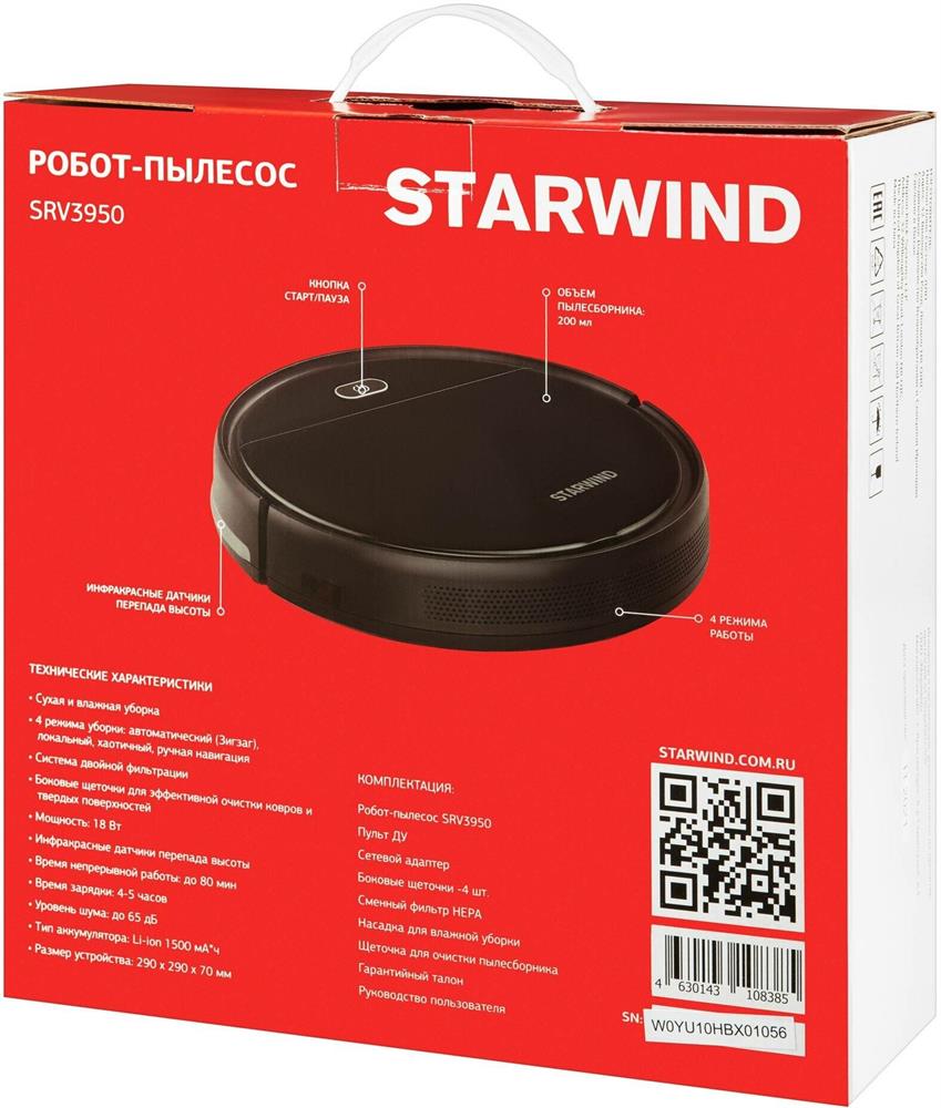 Пылесос без мешка STARWIND SRV3950 18Вт черный