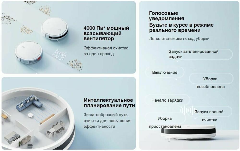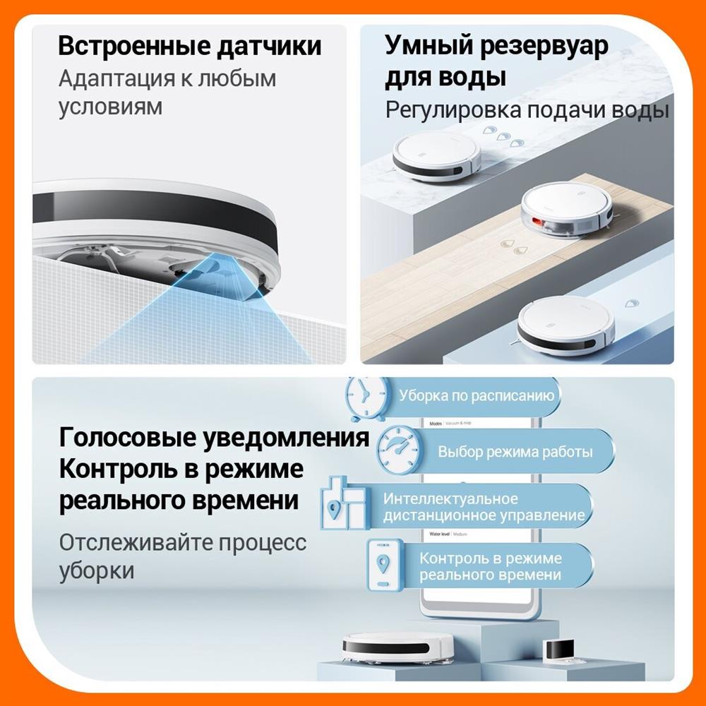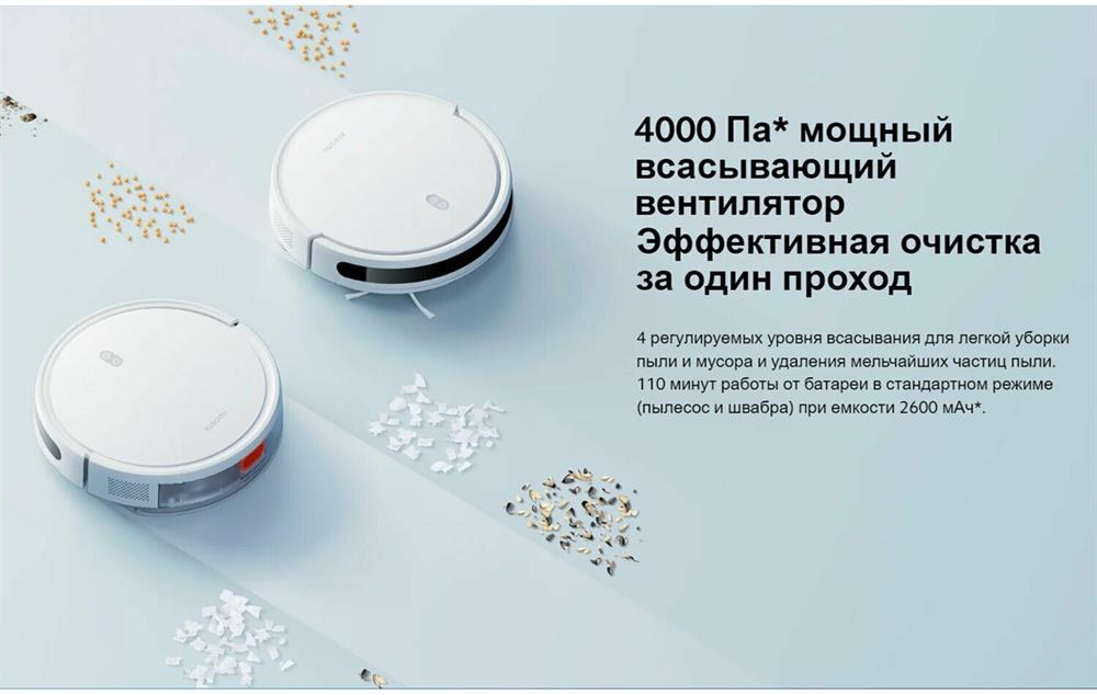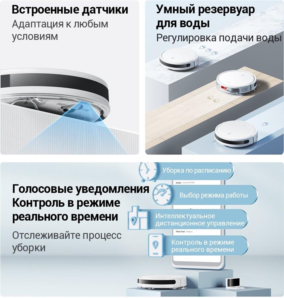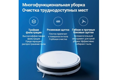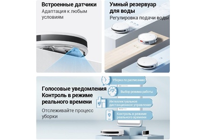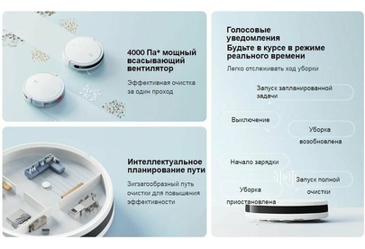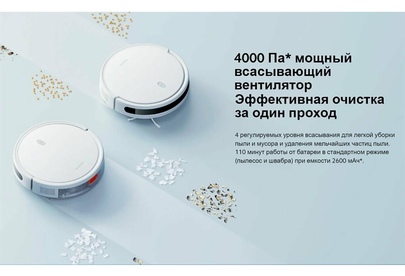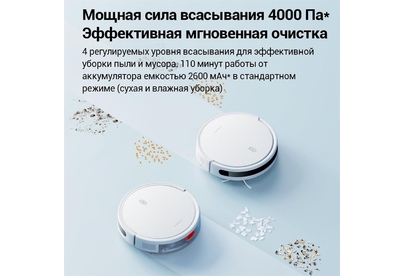 Тип уборки сухая или влажная уборка. Тип пылесборника контейнер. Построение карты помещения Да. Объем резервуара для жидкости (мл) 200. Емкость пылесборника (мл) 400. Мощность (Вт) 35. Управление со смартфона Да. Питание Емкость аккумулятора 2600 mA-ч. Время работы (мин) 110. Источник питания от аккумулятора.