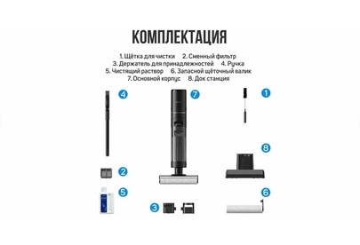Мощность: 400. Мощность всасывания (Вт): 250. Объем пылесборника: 0.5. Регулировка мощности: на ручке. Общее количество насадок: 1. Вес товара: 5.1. Бак для чистой воды: 0.9. Бак для использованной воды: 0.7. Тип электропитания: от аккумулятора. Тип аккумулятора: Li-Ion. Емкость аккумулятора: 4000. Площадь уборки от одного заряда: 300. Габариты упаковки (ед) ДхШхВ: 0.4x0.345x0.77. Вес упаковки (ед): 4.9. Турборежим: есть. Мощность всасывания (Па): 18000. Гарантия: 12 мес.. Время уборки: 50 минут. Время заряда: 240 минут. Цвет: черный/черный. Индикация: включения, режима работы, степени зарядки. Фильтры: HEPA. Тип уборки: влажный, сухой. Функции и особенности базы: автоматическая очистка насадки, автоматическая сушка насадки. Особенности пылесоса: LED-дисплей, место для хранения насадок, напольная подставка. Комплектация: насадка для пола и ковров. Пылесборник: контейнер для пыли. Пылесборник: контейнер для пыли; объем пылесборника: 0.5 л. Тип уборки: влажный, сухой. Фильтры: HEPA. Мощность: потребляемая 400 В