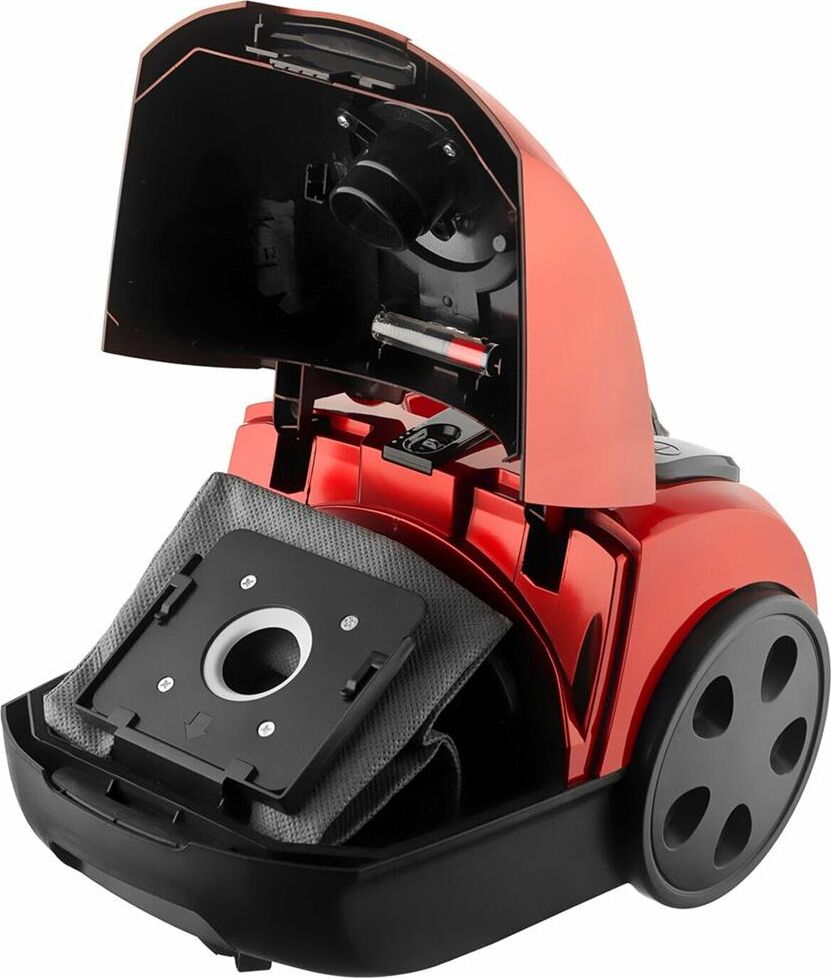 Максимальная мощность 1800 Вт. Мощность всасывания 380 Вт. Регулировка мощности на корпусе. Ёмкость мешка для пыли 2,5 л. Стальная телескопическая труба 90 см. Универсальная щётка с переключателем «пол/ковёр» Дополнительная насадка: комбинированная щелевая Насадка 3 бумажных мешка и 1 текстильный мешок в комплекте. Длина шнура 5 м. Автоматическая смотка шнура. Вертикальная и горизонтальная парковка Электропитание 220-240 В., ~50/60 Гц.
