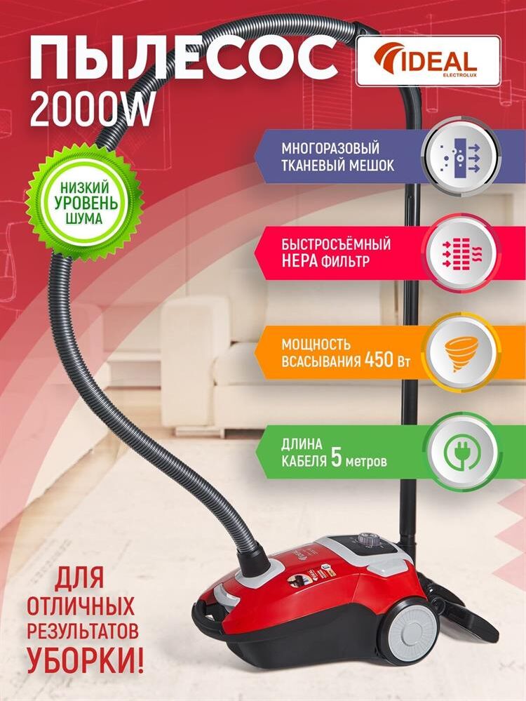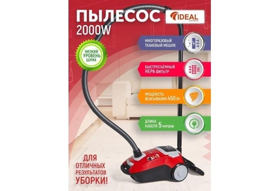 Пылесос с пылесборником IDEAL VC-2000 красный