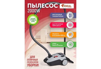 Пылесос с пылесборником IDEAL VC-2000 серый
