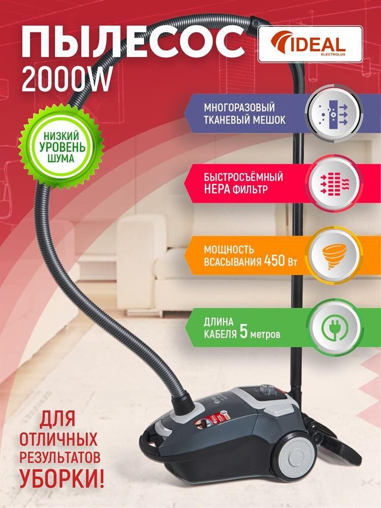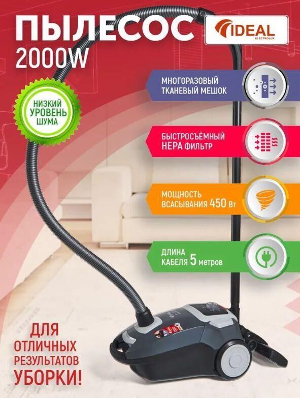 Пылесос с пылесборником IDEAL VC-2000 темно серый