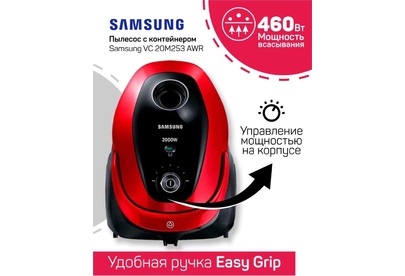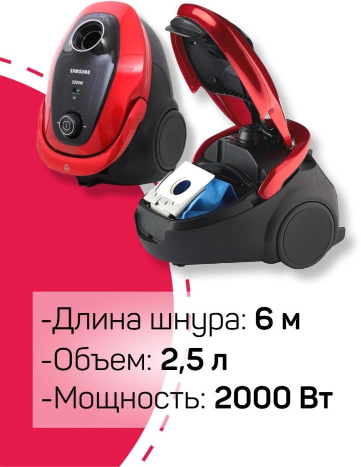 Тип Мешок для сбора пыли. Объем пылесборника 2.5 л.. Максимальное энергопотребление 2000 Вт. Уровень шума 83 дБА. Мощность всасывания 460 Вт. Управление На корпусе. Цвет Красный. Ширина зоны уборки 265 мм. Прорезиненные колеса Да. Выходной фильтр Да. Предмоторный фильтр Да. Шланг с возможностью поворота на 360 градусов Да. Длина сетевого шнура 6 м. Радиус хода 9.2 м. Размеры (ШxВxГ) 280x246x390 мм.