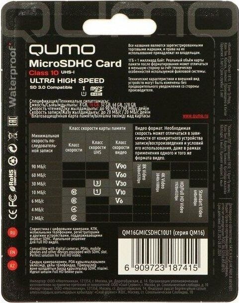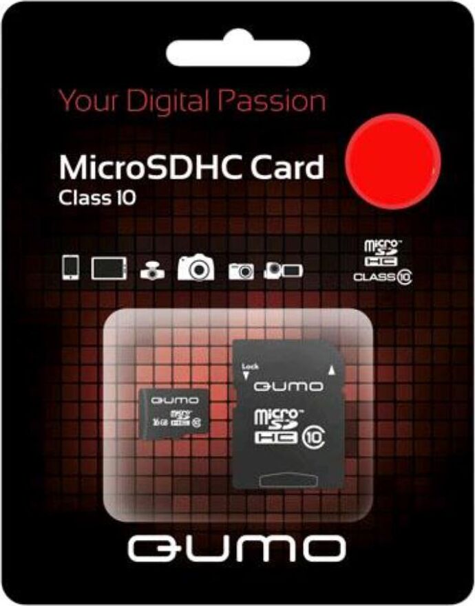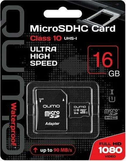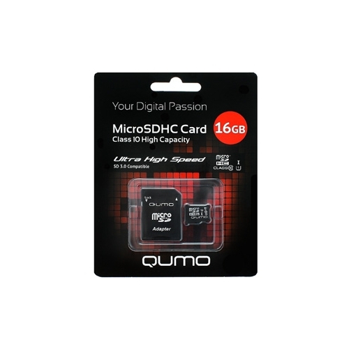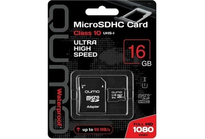 QUMO (18741) MicroSDHC 16GB Class10 UHS-I + адаптер (QM16GMICSDHC10U1)