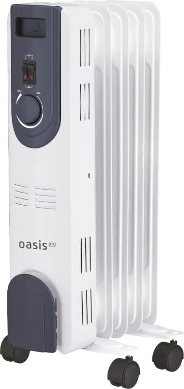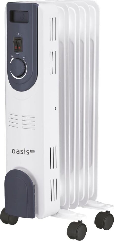 Масляный радиатор "Оasis Pro" модель OT-10. Напряжение 220 В Max мощность 1 кВт Рекомендуемая площадь 10 м² Габариты без упаковки 550х240х245 мм Цвет белый Количество режимов нагрева 3 Управление механическое Встроенный тепловентилятор нет Количество секций 5 Серия OT Вес нетто 5.13 кг Отключение при опрокидывании нет Дисплей нет Наличие защитного кожуха нет Преимущества Световой индикатор работы. Регулируемый термостат. Широкие поперечные перегородки. Увеличенная жесткость секций. 3 ступени регулировки мощности нагрева. Легкость перемещения прибора.