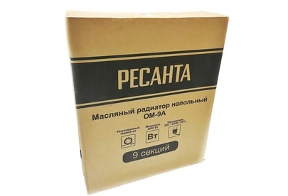 РЕСАНТА ОМ-9А (2 кВт) Цвет товара белый Тип обогревателя масляный радиатор Количество секций 9 Количество режимов работы 3 Управление механическое Установка напольная Ширина 40 см Толщина 14 см Высота 65 см Вес 9.84 кг