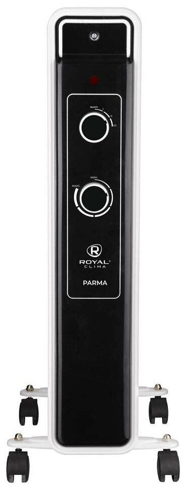 Масляные радиаторы серии PARMA от ROYAL Clima — это стильное и безопасное решение для обогрева вашего дома. Модельный ряд PARMA включает в себя модели мощностью от 1 до 2,5 кВт и рассчитаны на эффективный обогрев помещения площадью до 30 кв.м. Каждый обогреватель оснащен тремя режимами нагрева воздуха (мягкий, средний и интенсивный) – потребитель может выбрать наиболее подходящий для него, исходя из собственных предпочтений и требований. При производстве радиаторов применяется экологически чистое масло, которое проходит многоступенчатую систему очистки по стандарту HD 300, что позволяет работать радиатору без шума и запаха. Современный дизайн прибора с черной глянцевой лицевой панелью станет прекрасным дополнением вашего интерьера. Переместить радиатор легко с помощью колёсиков и эргономической ручки в верхней части прибора.