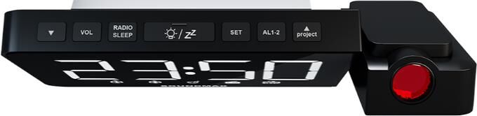 Светодиодный дисплей с высотой символов 1,6” (4.06 см) Регулируемая яркость дисплея (3 уровня) Кварцевый стабилизатор Два будильника Два режима работы будильника (сигнал/радио) Отложенный сигнал будильника Отключение радио по таймеру Настраиваемый проектор Регулируемая яркость проектора (2 уровня) FM-тюнер (87.5 – 108 МГц) Выходная мощность: 1 Вт Питание от адаптера (в комплекте) Индикация: белая Цвет: чёрный