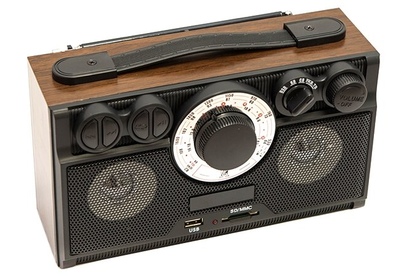 Тюнер аналоговый, УКВ/СВ/КВ диапазоны (УКВ 64-108МГц СВ 530-1600КГц КВ 7,2-16,0Мгц), 2 динамика (монозвук) мощностью Ф64mm/4Ом/3W*2шт, питание 220В, батарейки R20*4шт (не в компл.), размер 215*90*126мм, возможность воспроизведения с USB, SD, телескопическая антенна, разъем под наушники, ручка для переноски.