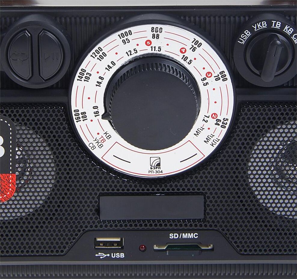 Радиоприемник БЗРП РП-304 УКВ 64-108МГц, бат. 4*R20, 220V, USB/SD, 2 динамика