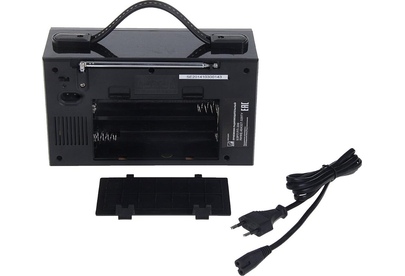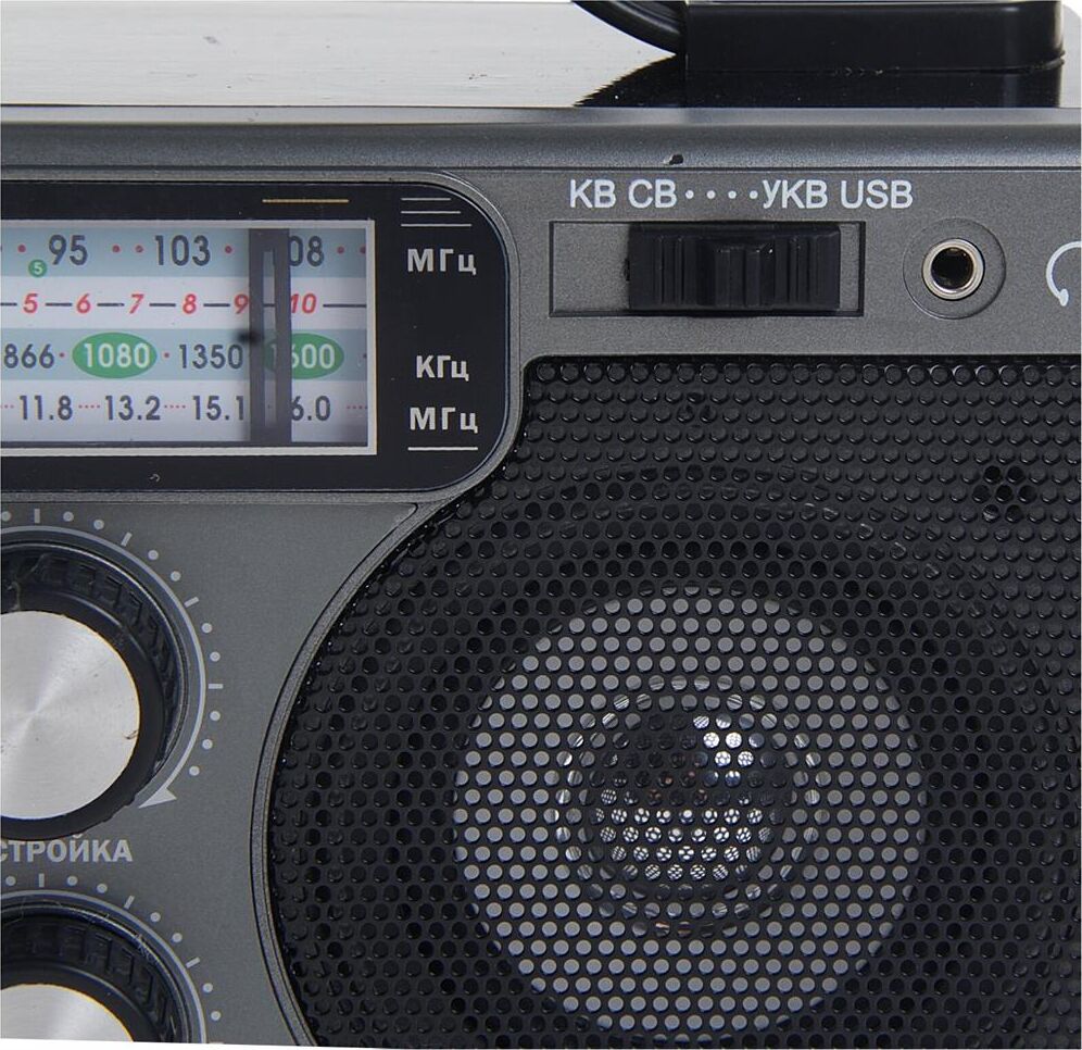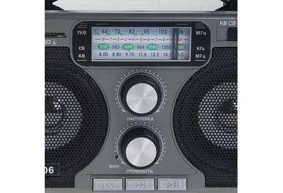 Тюнер аналоговый, УКВ/СВ/КВ диапазоны (УКВ 64-108МГц СВ 530-1600КГц КВ 8,0-16,0МГц), 2 динамика (монозвук) мощностью Ф64mm/4Ом/3W*2шт, питание 220В, батарейки R20*4шт (не в компл.), размер 220*135*135мм, возможность воспроизведения с USB, SD, телескопическая антенна, разъем под наушники, ручка для переноски.
