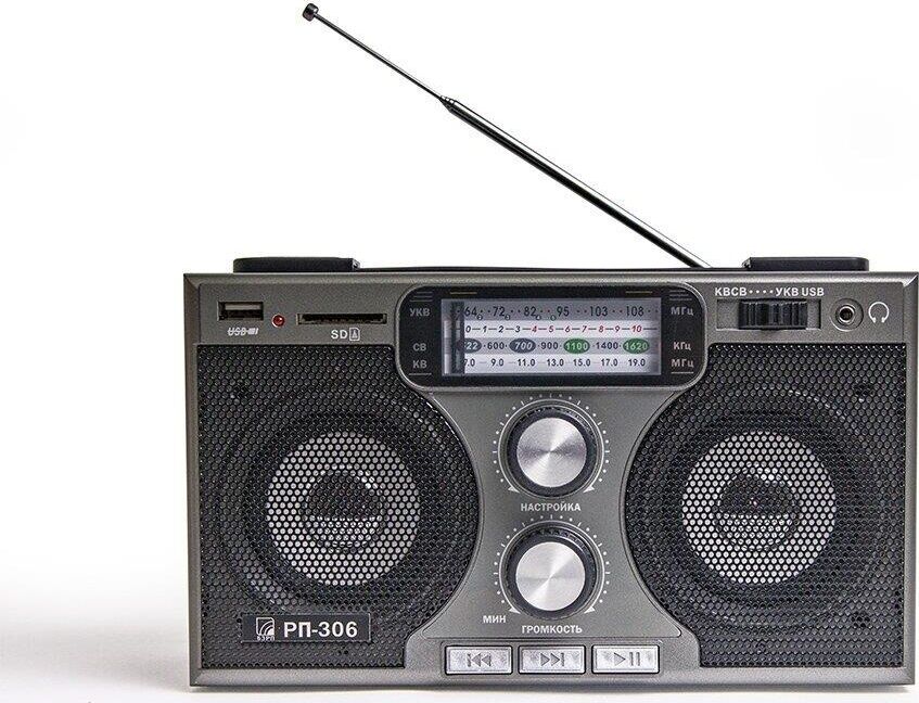 Радиоприемник БЗРП РП-306 УКВ 64-108МГц, бат. 4*R20, 220V, USB/SD, 2 динамика