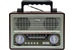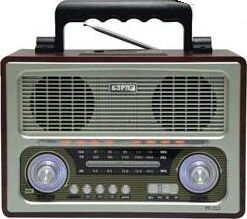 Тюнер аналоговый, УКВ/СВ/КВ диапазоны (УКВ 64-108МГц СВ 520-1620КГц КВ 5,9-18,0МГц), 2 динамика (стереозвук) мощностью Ф76mm/4Ом/3W*2шт, питание 220В, батарейки R20*4шт (не в компл.), аккумулятор 1400мА/ч, размер 275*130*185мм, возможность воспроизведения с USB, SD, microSD (TF), AUX, разъем для внешнего питания 6В, телескопическая антенна, функция записи, ручка для переноски.