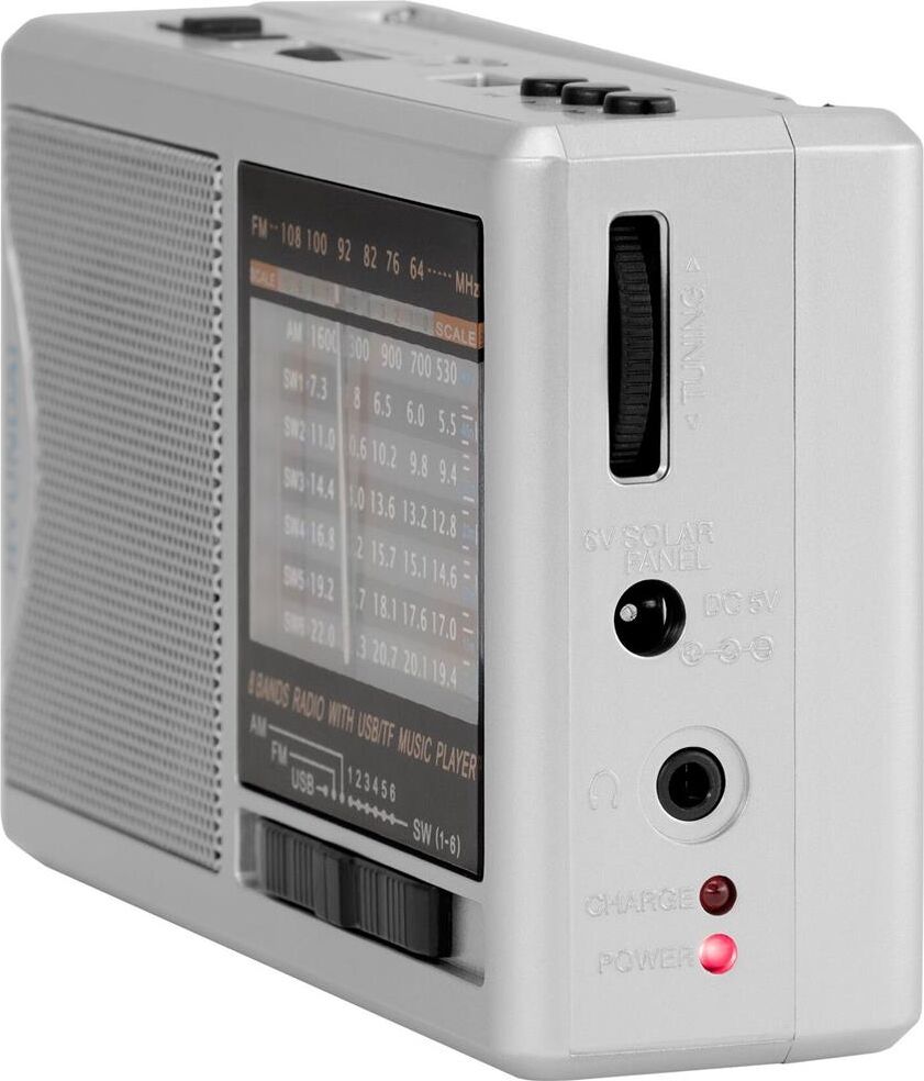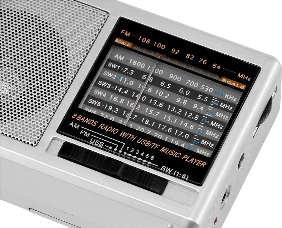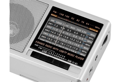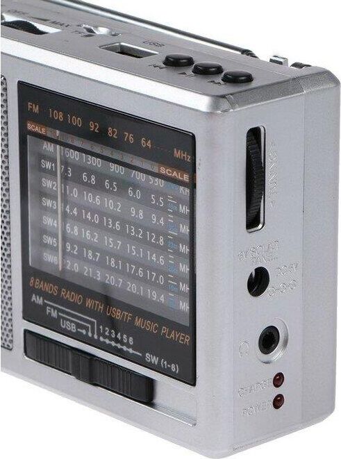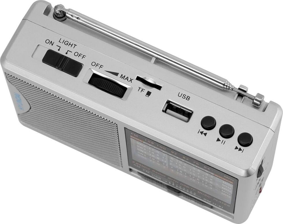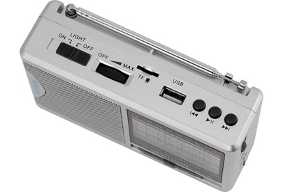 портативный, тюнер — аналоговый, FM, AM, SW, USB — 1, поддержка карт памяти microSD, разъем для наушников — 3.5 мм, цвет — серебристый