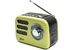 Радиоприёмник портативный трехдиапазонный FM/AM/SW, Bluetooth v.5.3, воспроизведение с USB и с карт памяти micro SD (до 32Gb), аналоговый тюнер, динамик 52мм 5 Вт 4 Ом, ручка настройки частоты и громкости, телескопическая антенна, питание (DC) Type C 5В 1A 3,5 Watt (Type-C - USB кабель 80cm в комплекте), 140*70*95 мм