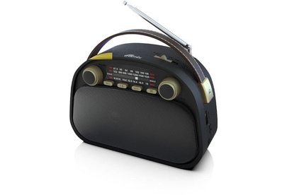 Радиоприёмник портативный трехдиапазонный FM/AM/SW Bluetooth v.5.3, с ручкой для переноски, воспроизведение с USB и с карт памяти micro SD (до 32Gb), аналоговый тюнер, динамик 76мм 5Вт 2Ом, ручка настройки частоты и громкости, телескопическая антенна, питание (DC) Type C 5В 1A 2Watt (Type-C - USB кабель 80cm в комплекте) 187*86*134 мм