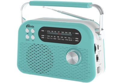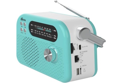 Портативный трёхдиапазонный радиоприёмник с ручкой для переноски. Поддержка Bluetooth v.5.4 и режима MP3, воспроизведение с USB/micro SD карт, питание USB Type-C, сменный аккумулятор на 1200 мАч