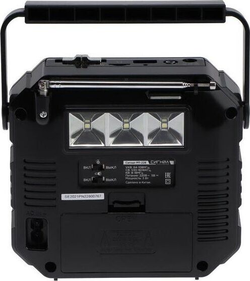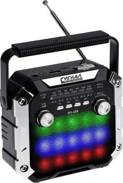 Радиоприемник СИГНАЛ РП-228 УКВ 64-108МГц, 220V, акб 1200mA/h, USB/microSD/AUX, светодиодный фонарь/дискосвет