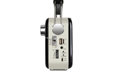 Портативная беспроводная акустическая система ,Bluetooth, выходная мощность (RMS) - 4Вт, частотный диапазон, Гц 100 – 12 000, размеры динамиков, мм - O 90, диапазон частот тюнера, МГц - 87.5 – 108, воспроизведение музыки с носителей памяти USB, microSD, источник питания - литий-ионный aккумулятор: 1200 мA · час, USB: DC 5 V, размеры изделия (мм) - 230х147х110.
