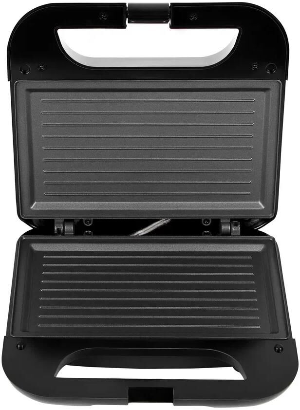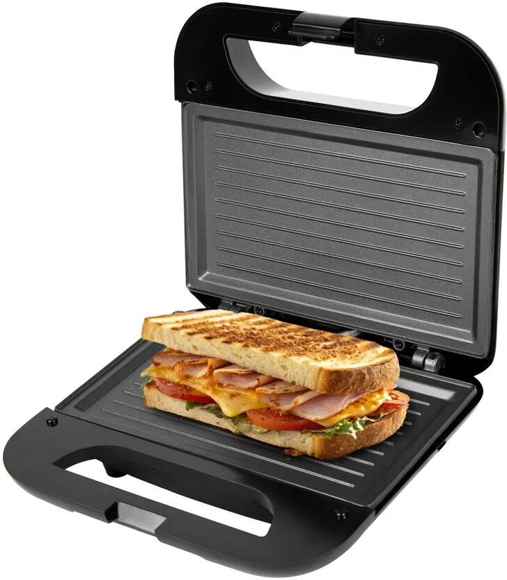 Универсальная сэндвичница мощностью 750 Вт с гриль-панелями позволяет быстро приготовить 4 прямоугольных бутерброда за один цикл без использования масла. Устройство с черным пластиковым корпусом и металлической рабочей поверхностью, покрытой антипригарным слоем, обеспечивает равномерное пропекание и легкую очистку. Работая от сети 220-240 В с кабелем 0,8 м, прибор оснащен индикатором включения и нагрева для контроля готовности. Безопасность и удобство использования обеспечивают термоизолированные ручки, защелка-фиксатор, антискользящие ножки и вертикальная подставка для компактного хранения. В комплекте: руководство пользователя и две коробки (подарочная и транспортировочная), что делает эту модель идеальным выбором для быстрого приготовления горячих бутербродов и тостов.