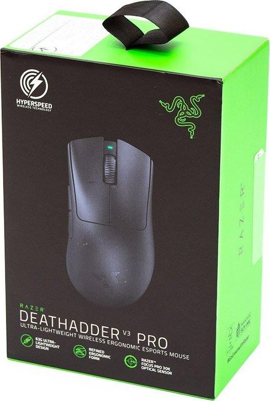Технология: оптическая. Подключение по USB: есть. Тип соединения мыши: проводная/беспроводная. Разрешение сенсора, макс.: 30000. Изменение чувствительности сенсора: есть. Количество кнопок: 5. Колесо прокрутки: есть. Для геймеров: да. Питание от: собственных аккумуляторов. Длина провода: 1.8. Хват: для правой руки. Радиус действия мыши: 10. Поддержка разрешений: 400/800/1600/3200/6400/30000. Интерфейс подключения: USB-C. Частота опроса USB порта: 1000. Количество программируемых клавиш: 5. Особенности: Беспроводная связь Razer Hyperspeed или проводной режим. 5 программируемых кнопок. Сверхлегкая 63 грамма. Оптический сенсор Razer Focus Pro 30 000 DPI.. Вес: 63. Тип беспроводного соединения: Радио. Подключение по USB (Type-C): есть. Габариты упаковки (ед) ДхШхВ: 0.176x0.12x0.07. Вес упаковки (ед): 0.5. Комплектация: Игровая мышь Razer DeathAdder V3 Pro, USB передатчик 2,4 ГГц Razer USB HyperSpeed Wireless Dongle, Адаптер Razer USB Dongle Adapter, Кабель USB-A/USB-C Speedflex, Важная информация о продукте. Стра