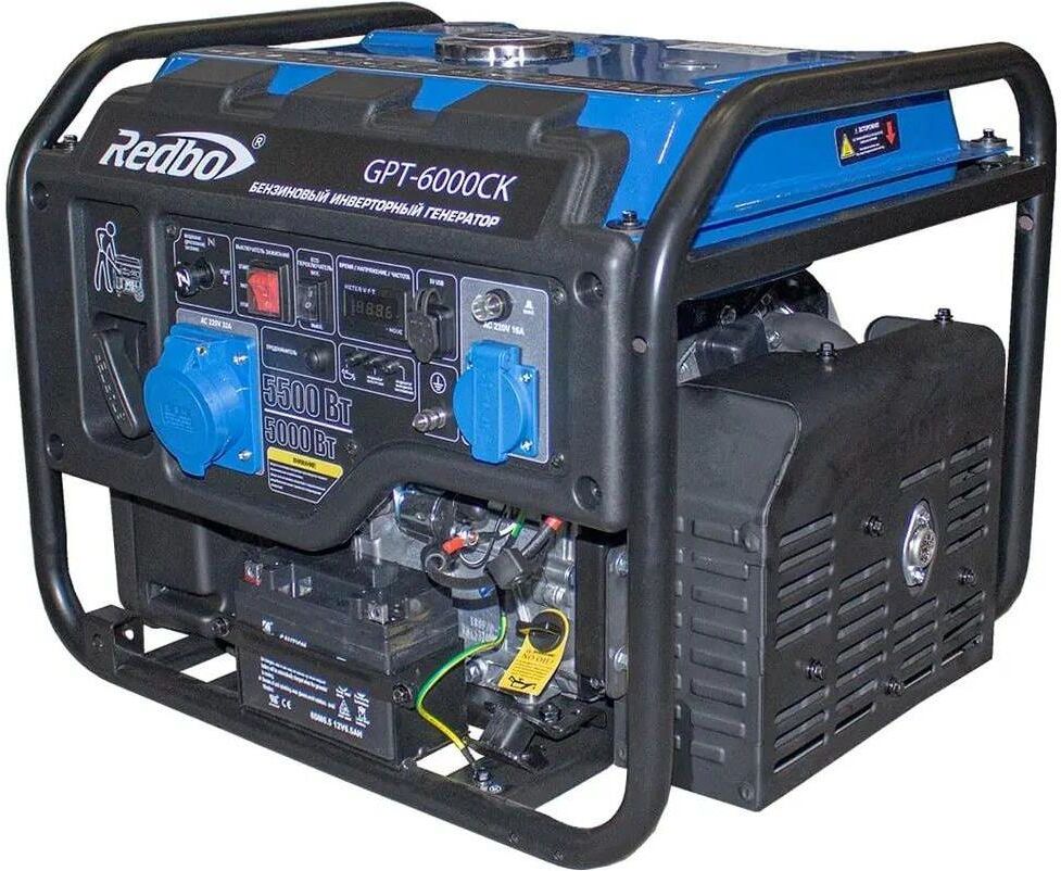 REDBO Бензиновый генератор GPT-6000CK, 220 В, 5.5кВт, на колёсах с АКБ [39793]