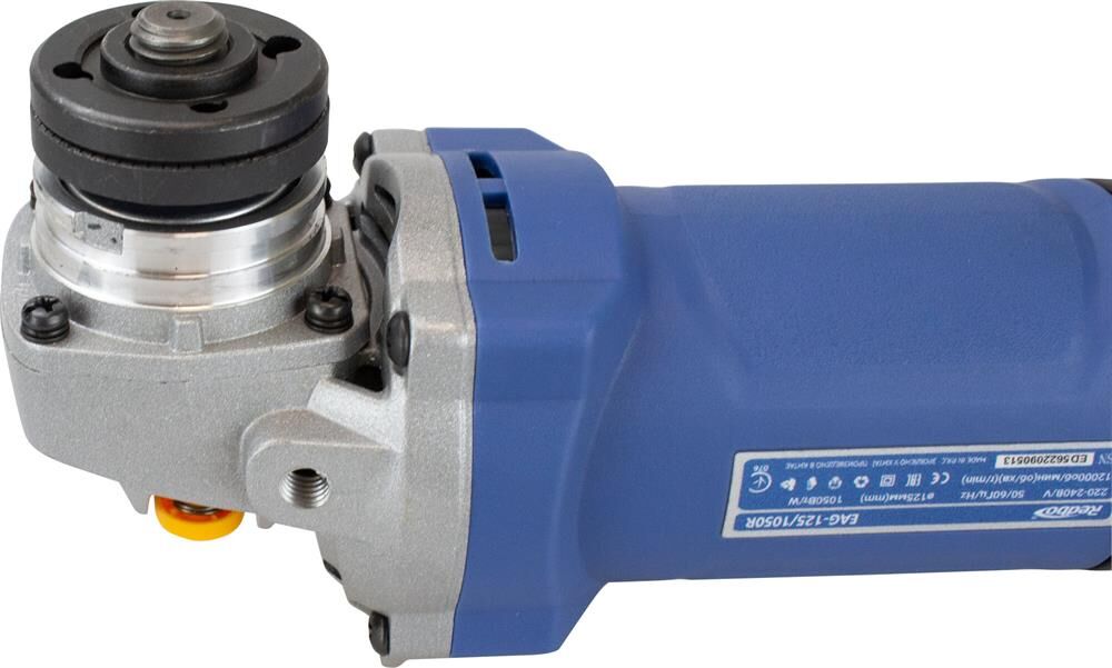 Профессиональная угловая шлифовальная машина (УШМ болгарка) УШМ Redbo EAG125/1050R - электроинструмент, предназначенный для резки, шлифовки различных типов материалов и поверхностей. Основные параметры: Мощность - 1050 Вт.; Макс. частота вращения диска - 12 000 об/мин.; Диаметр посадочного отверстия - 22,2 мм.; Макс. диаметр диска - 125 мм.; Резьба на шпинделе - М14
