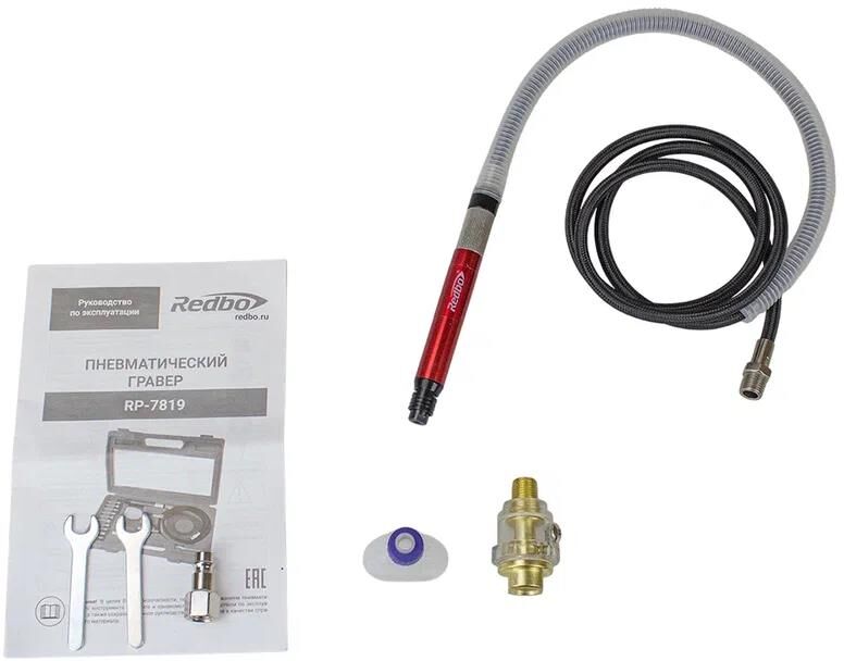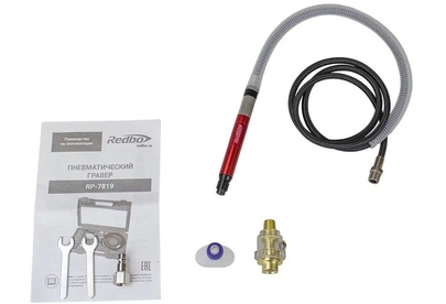 REDBO RP-7819 Пневматический гравер (3 мм., 57л.мин. гибкий вал, комплект насадок 10шт., лубрикатор