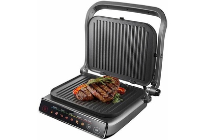 Автоматическое отключение (защитное): есть. Антипригарное покрытие нагревательных частей: ДА. Вес товара: 4.8. Вес упаковки (ед): 5.92. Габариты упаковки (ед) ДхШхВ: 0.42x0.2x0.42. Длина рабочей поверхности: 24.4. Длина электрокабеля: 0.9. Звуковой сигнал: есть. Индикатор включения: есть. Индикатор нагрева: есть. Информационный дисплей: есть. Количество программ/режимов: 7. Лоток для сбора жира: есть. Раскрытие на 180 градусов: есть. Съемные формы: есть. Тип управления: механическое. Ширина рабочей поверхности: 31.3. Гарантия: 12 мес.. Мощность: -2100 Вт. Температура: 0-230 °С. Материал корпуса: нержавеющая сталь/пластик. Размеры (ШхВхГ): 37.7х16х32.7 см. Цвет: серый. Особенности: раскрытие на 180 градусов, лоток для сбора жира