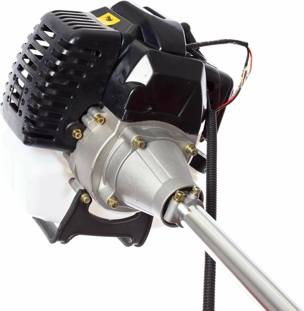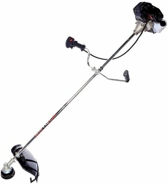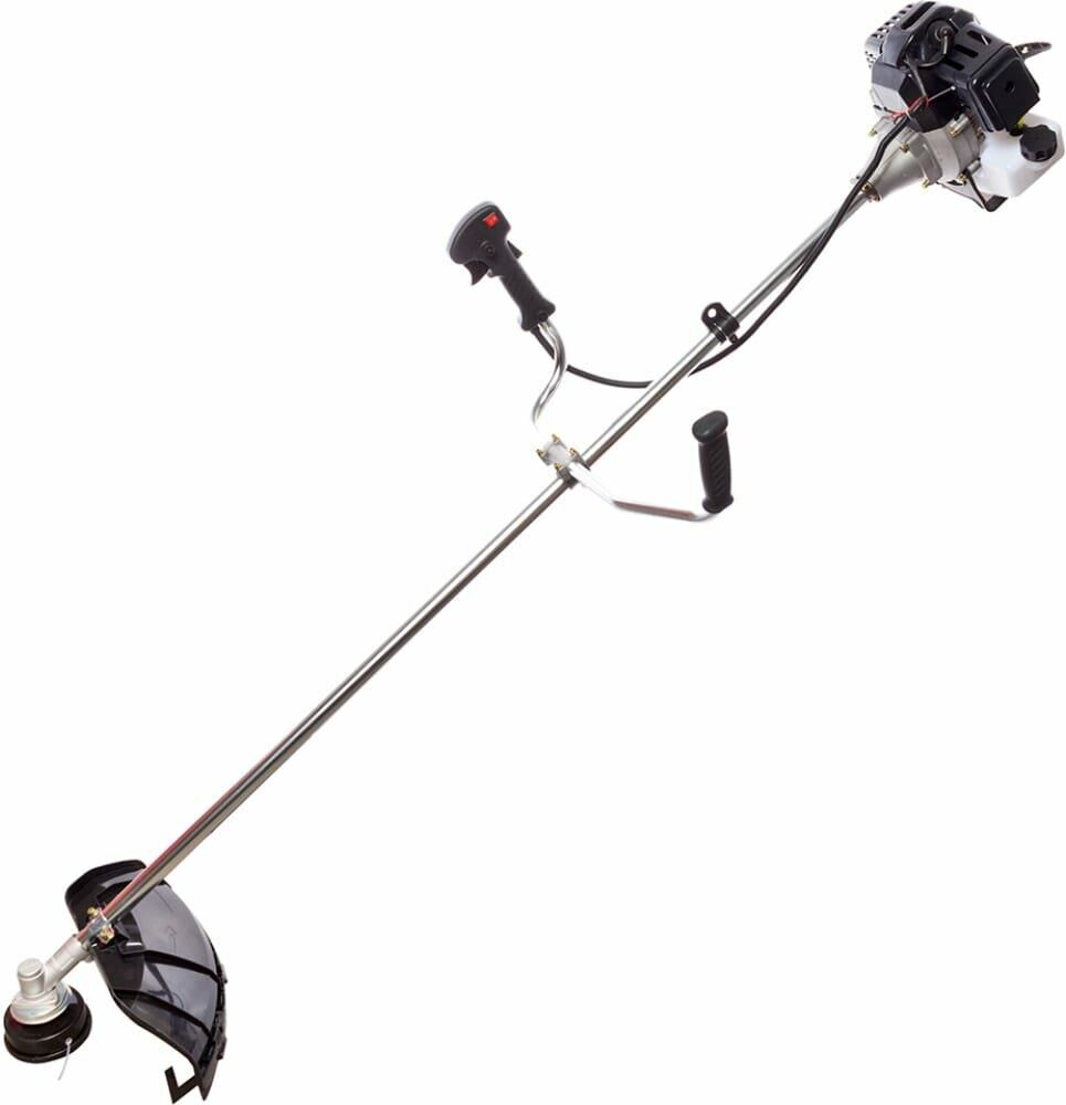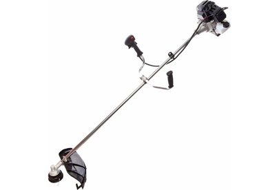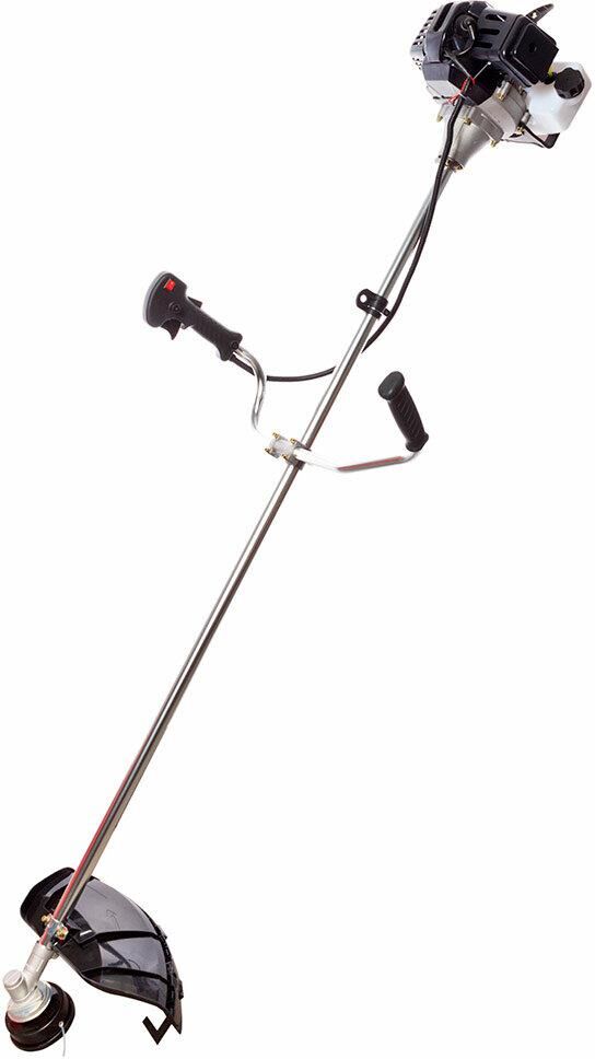 Тип двигателя: бензиновый. Расположение двигателя: верхнее. Форма штанги: прямая. Мощность двигателя (Вт): 2200. Объем двигателя: 51.7. Кол-во тактов двигателя: двухтактный. Емкость топливного бака: 1. Режущий элемент: леска и нож. Диаметр круга стрижки: 38. Диаметр используемой лески: 3. Размер используемого ножа: 255. Тип крепления триммера: плечевой ремень. Вес товара: 7.2. Комплект поставки: Триммер бензиновый, Ручка, Штанга, Режущий диск, катушка с леской, Защитный щиток, Наплечный ремень.. Особенности: Прямая неразъемная штанга с эргономичной «велосипедной» рукояткой. Литое крепление «велосипедной» рукоятки.. Мощность двигателя (л.с.): 3. Обороты двигателя: 7000. Материал ножа: металл. Тип косильной катушки: полуавтоматическая. Форма рукоятки: U-образная. Тип штанги: неразборная штанга. Посадочный диаметр диска: 25.4. Габариты упаковки (ед) ДхШхВ: 1.6x0.45x0.31. Вес упаковки (ед): 9.8. Страна производства: Китай. Гарантия: 12 мес.. Двигатель: бензиновый, 3 л.с., двухтактный, расположение верхнее. Вес: 7