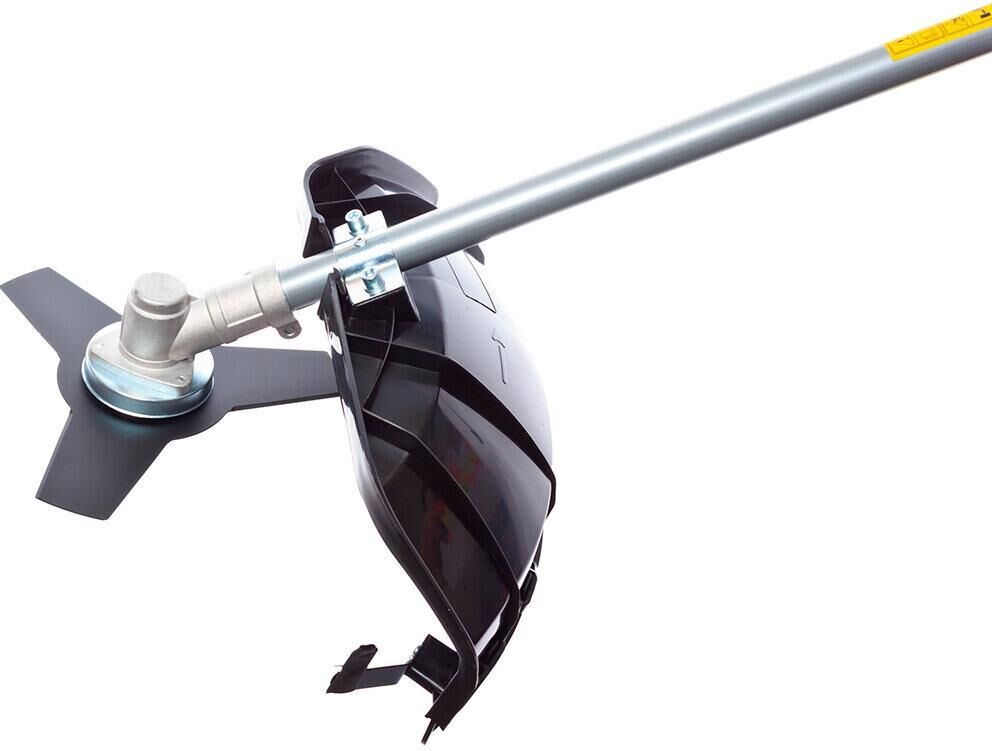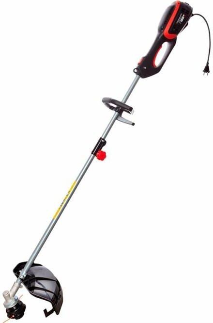 Тип двигателя: электрический. Расположение двигателя: верхнее. Форма штанги: прямая. Мощность двигателя (Вт): 1300. Тип электропитания: от электросети. Режущий элемент: леска и нож. Диаметр круга стрижки: 25.5. Диаметр используемой лески: 2. Размер используемого ножа: 230. Тип крепления триммера: плечевой ремень. Длина сетевого кабеля: 0.3. Вес товара: 4.37. Комплект поставки: Защитный щиток; пластиковый ключ; шпулька (катушка) с леской; трехлопастной нож; рукоятка дополнительная; накидной ключ; шестигранный ключ - 2 шт.; гайка - 2 шт.; пружинная шайба «гровер» - 2 шт.; винт - 2 шт.; наплечный ремень (одинарный).. Особенности: 2 оснастки: леска и нож; Сбалансированная конструкция; Питание от бытовой сети - отсутствие токсичных выхлопов, низкий уровень шума; Защита двигателя от перегрева; Защита от случайного включения.. Мощность двигателя (л.с.): 1.77. Обороты двигателя: 6000. Материал ножа: металл. Тип косильной катушки: полуавтоматическая. Форма рукоятки: P-образная. Тип штанги: разборная штанга. Посадочный